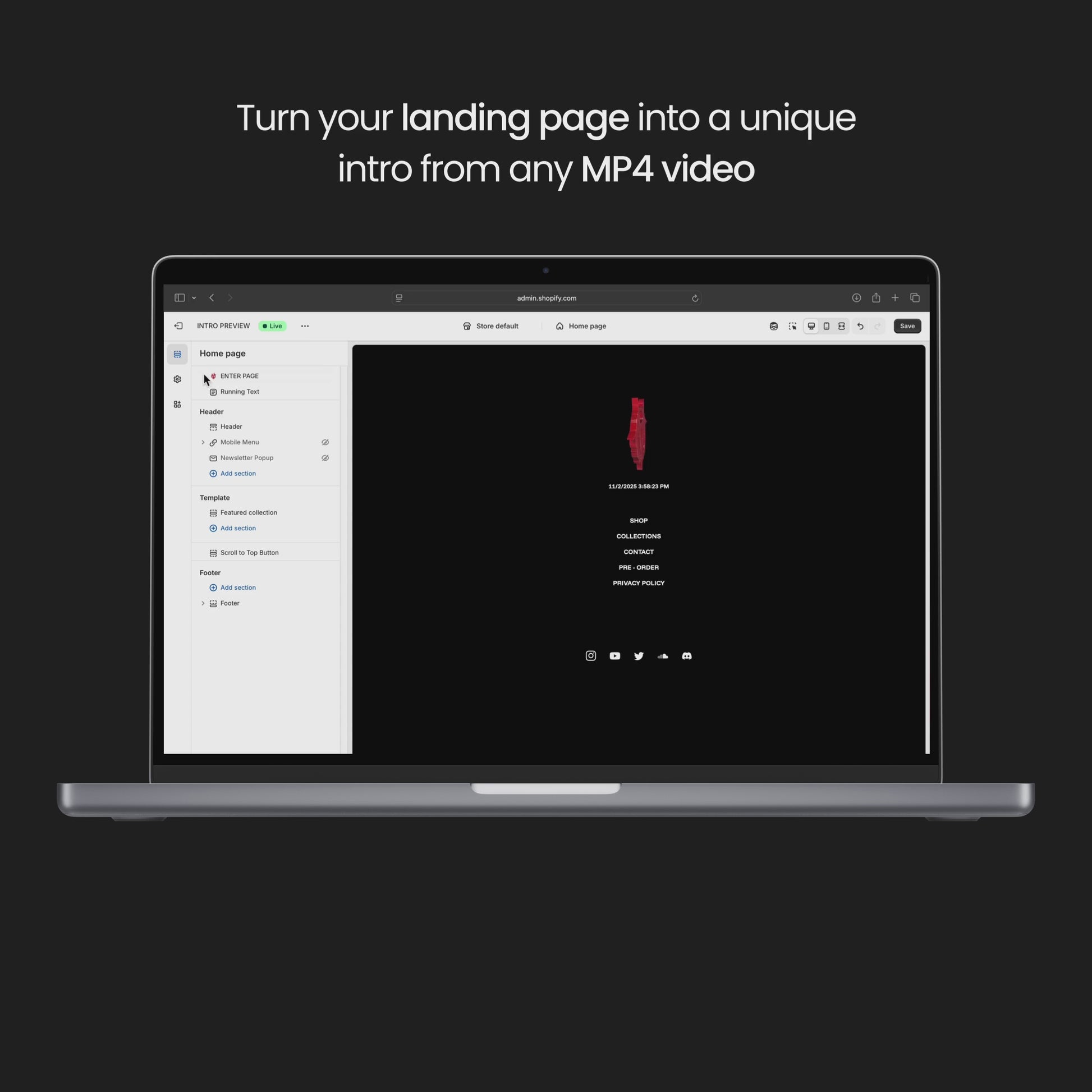 A Shipping Status Bar on the password page adds a layer of transparency and momentum, while 3D GLB models bring futuristic presentation to any part of the site — product pages, collections, landing page, or even the lock screen. You can even place a 3D logo to make your brand identity feel alive and dimensional.