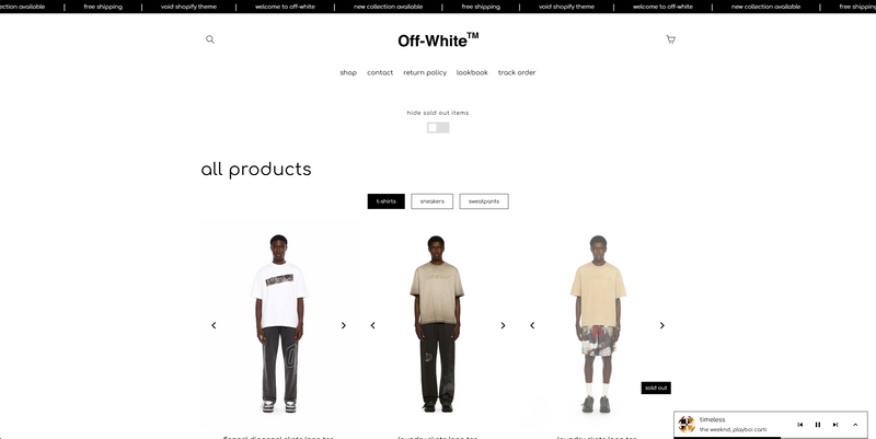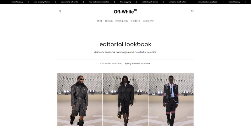 Void is where a theme stops acting like a storefront and starts functioning like a brand platform. Built for labels that move with Off-White energy — industrial, confident, culture-driven — Void takes everything from Raw and Neo and expands it into a fully immersive brand experience.