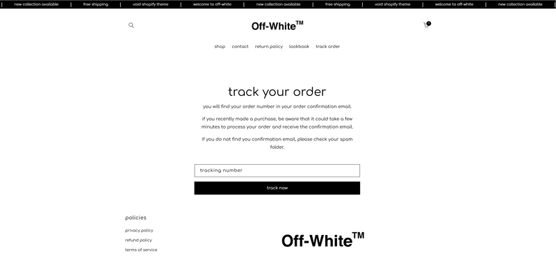 Void introduces a dedicated Track Order page that transforms a standard tracking lookup into a branded post-purchase experience. Instead of redirecting customers to external links or generic carrier pages, they stay inside your visual universe while checking their order status.
